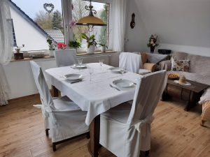 Begeben Sie sich mit uns auf einen virtuellen Rundgang und sehen Sie sich die Bilder aus der Wohnung, dem Garten und dem Ort an!